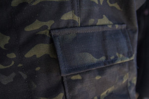 Die Brusttaschen verfügen über eine abgeschrägte Öffnung. Das ermöglicht den einfachen Zugriff auch bei Verwendung eines Einsatzrucksacks, Chestriggs oder ähnlichem. Hier bequem von der Seite aus unter die Begurtung greifen gegriffen werden.